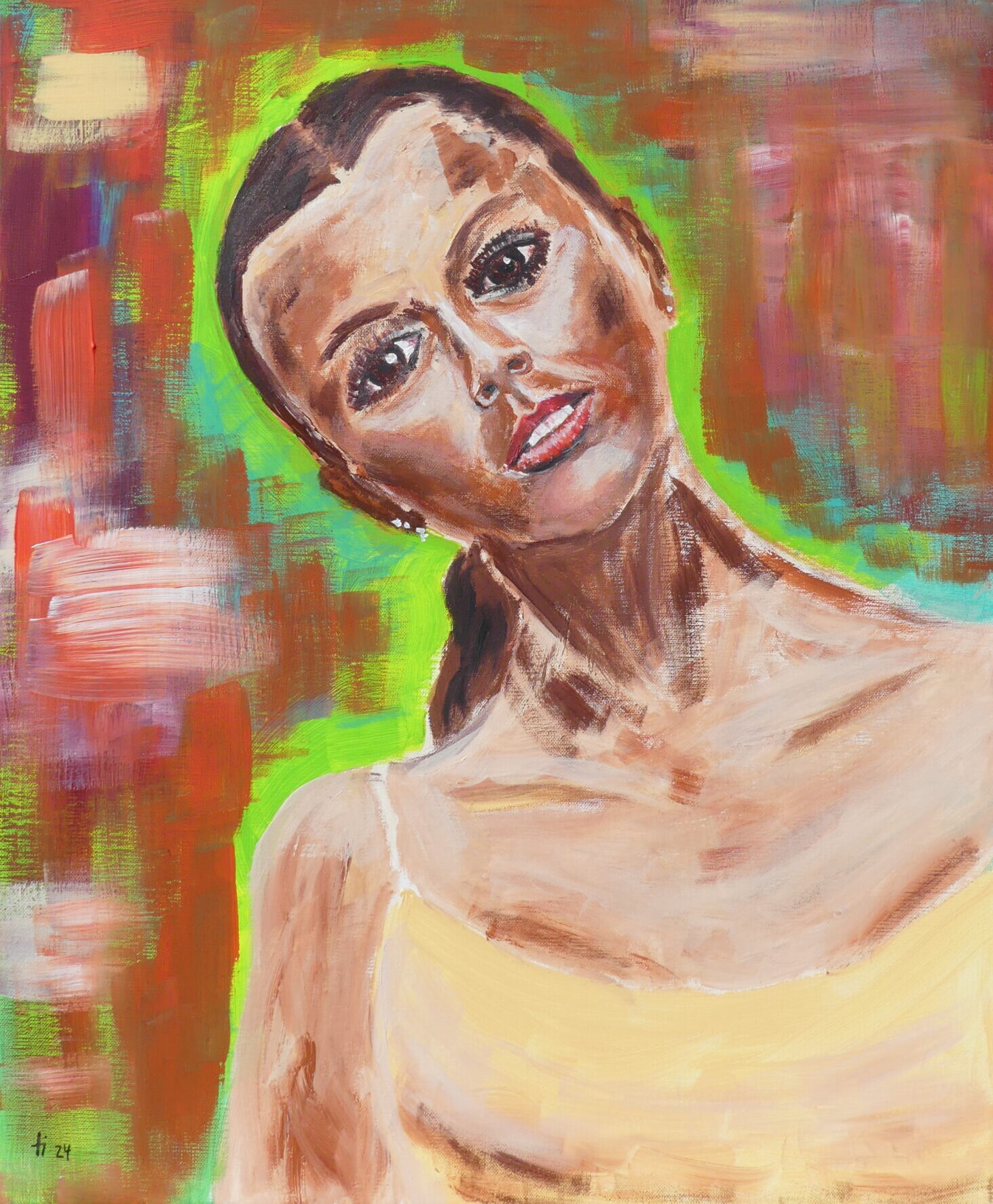 Diese – wie ich empfinde – zauberhafte junge Frau in ihrer so vieldeutig versonnenen Pose, habe ich im Mai 2023 in Saint Paul de Vence fotografiert und mehr als ein Jahr später ein erstes Mal gemalt.